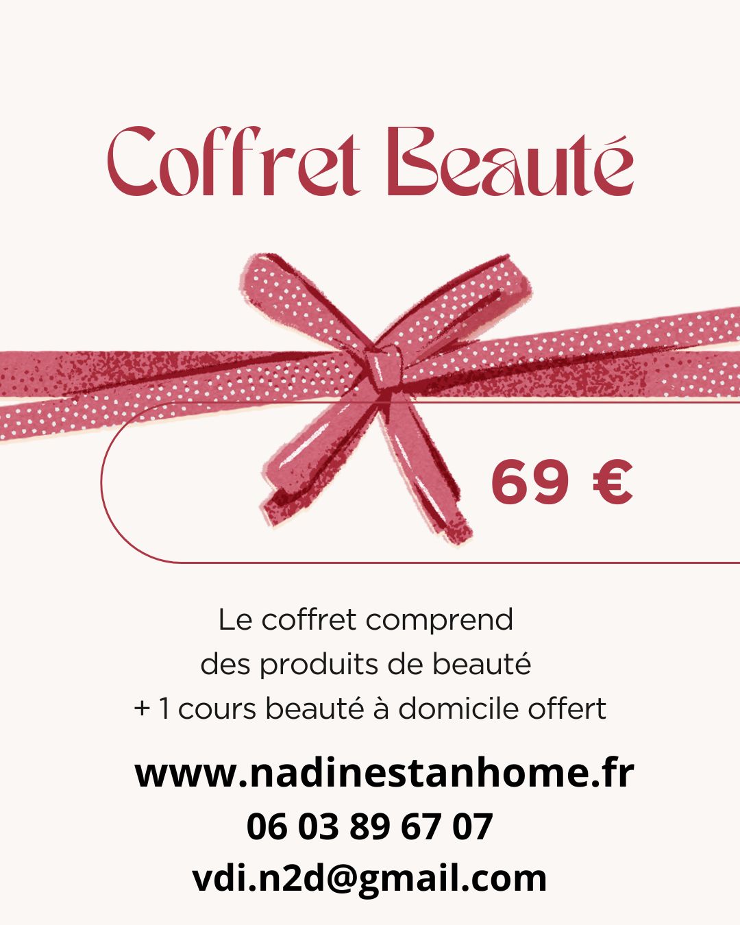 L’offre comprend : des Produits de beauté + 1 cours Beauté offert au domicile